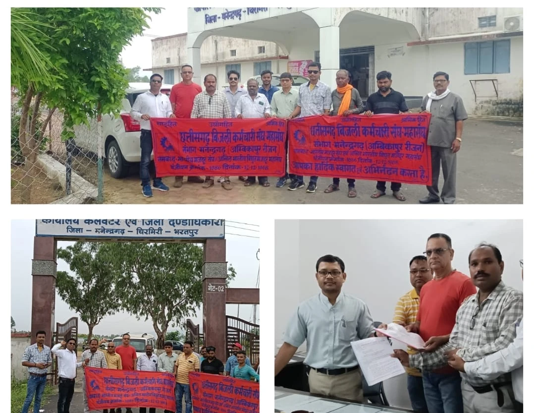 भारतीय मजदूर संघ से संबद्ध छत्तीसगढ़ बिजली कर्मचारी संघ-महासंघ के द्वारा छत्तीसगढ़ स्टेट पॉवर कंपनीज के कर्मचारियों से संबंधित व्याप्त श्रमिक समस्याओं के निराकरण हेतु संदर्भित पत्र के माध्यम से चरणबद्ध आंदोलन की सूचना दी गयी है। उक्त आंदोलन के समर्थन में आज 29.08.2025 को आमसभा/प्रदर्शन कर इस ज्ञापन के माध्यम से आपका ध्यान आकर्शित करते हुए समाधान की अपेक्षा से निम्नलिखित बिन्दुओं पर भभीघ्र निर्णय लेने का अनुरोध किया गया जिसमें 01. राज्य सरकार की तरह पॉवर कंपनी में पुरानी पेंशन योजना लागू किया जावे छत्तीसगढ़ प्रदेश में राज्य सरकार द्वारा पुरानी पॉश्न योजना लागू करते हुए राज्य सरकार के सभी कर्मचारियों के लिए 01.04.2022 से पुरानी पेंशन योजना लागू की गई है, किन्तु पॉवर कंपनी में अभी तक लागू नहीं हो पायी है। जबकि इस हेतु राज्य सरकार से सहमति प्राप्त हो चुका है। अतः महासंघ इस ज्ञापन के माध्यम से मांग करता है कि राज्य सरकार के आदेश के अनुरूप पॉवर कंपनीज में भी 01.04.2004 के पश्चात् नियुक्त कर्मियों के लिए भी पुरानी पेंशन योजना लागू किया जावे। 02. पॉवर कंपनी में कार्यरत संविदा कर्मचारियों को पूर्व की भांति नियमित किया जावे : पॉवर कंपनी का मूल आधार तकनीकी कर्मचारियों, जिनका नियमित प्रकृति के कार्य होने के उपरांत भी इनके पदों पर पूर्व में अलग-अलग तीन बार पूर्ववर्ती विद्युत मंडल एवं वर्तमान कंपनी प्रबंधन द्वारा संविदा नियुक्तियां की गई है, तथा प्रबंधन द्वारा नियत अंतराल के बाद नियमित भी किया गया। नियमित तकनीकी कर्मचारियों की भयंकर कमी को देखते हुए विद्युत कंपनी में नियमित / स्थायी प्रवृति के कार्य हेतु विगत कई वर्षों से कार्यरत सीधी भर्ती एवं भू-विस्थापित के तहत् नियुक्त समस्त संविदा लाईन कर्मचारियों को पूर्व की भांति नियमित किया जावे। 03. पॉवर कंपनी में तकनीकी कर्मचारियों को भी 3% तकनीकी भत्ता प्रदान किया जावे: पॉवर कंपनी में कार्यरत अधिकारियों को 3% तकनीकी भत्ता प्रदान किया जा रहा है, जबकि पावर प्लांट, सब स्टेशनों सहित टावर लाईन एवं एल.टी. लाईनों की देखभाल मरम्मत एवं उपभोक्ता सेवा का वास्तविक मैदानी कार्य तकनीकी कर्मचारियों के द्वारा ही संपादित किया जाता है। पॉवर कंपनी सानते हुए ट्रेड एस्टिब्लेशमेंट नियम के तहत कार्यों के घंटे (7) व छुटिटयां निधारित करती है। अतः पॉवर कंपनी में कार्यरत कनिष्ठ यंत्री सहित समस्त तकनीकी क..नि.कधारिया की भी 3% तकनीकी भत्ता प्रदान किया जावे। 04. पॉवर कंपनी में सुनिश्चित कैरियर प्रोन्नयन योजना- चतुर्थ उच्चतर वेतनमान लागू किया जावे -पॉवर कंपनी में कार्यरत अधिकांश अधिकारी / कर्मचारियों को वार्षिक वेतनवृद्धि में अवरोध (स्टेगनेट) हो जाने पर किसी कारण के वार्षिक वेतन