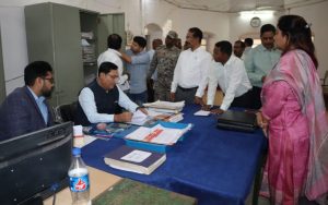 कोरिया 15 मार्च 2023/संभागायुक्त डॉ. संजय अलंग ने आज कलेक्टर विनय कुमार लंगेह के साथ बैकुंठपुर राजस्व अनुविभागीय अधिकारी सहित तहसील कार्यालय का निरीक्षण किया। उन्होंने इन कार्यालयों की विभिन्न शाखाओं के काम-काज, संधारित पंजी एवं इनके रख-रखाव का सूक्ष्मता से अवलोकन किया। उन्होंने चालू एवं निराकृत प्रकरणों का भी अवलोकन किया। डॉ. अलंग ने एसडीएम एवं तहसील कार्यालयों में राजस्व न्यायालयों के काम-काज का भी सूक्ष्मता से निरीक्षण किया। उन्होंने न्यायालय, डब्ल्यूबीएन, नायब नाजिर, कानूनगो आदि शाखाओं में पहुंचकर संबंधित प्रभारी से उनके दायित्व एवं काम करने के तौर-तरीकों की जानकारी ली और आवश्यक दिशा निर्देश भी दिए। उन्होंने डब्ल्यूबीएन वासिल बाकी नवीस शाखा को अपडेट रखने के निर्देश दिए। अभियान चलाकर करें नक्शा सुधार कार्य - संभागायुक्त